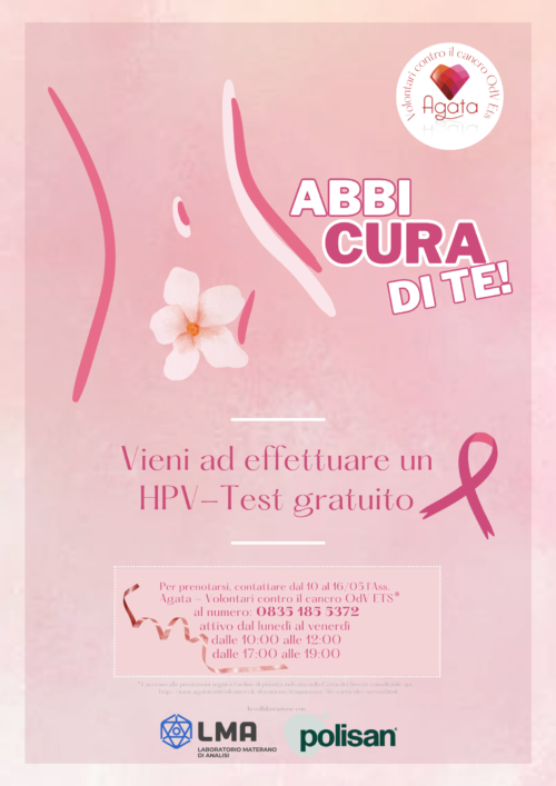 L’associazione “Agata – Volontari contro il cancro OdV ETS” promuove, nella seconda metà di maggio, l’iniziativa “Abbi CURA di te” durante la quale saranno effettuati 100 HPV-Test gratuiti (con eventuale pap-test correlato, anch’esso gratuito) a tutte coloro che ne faranno richiesta.