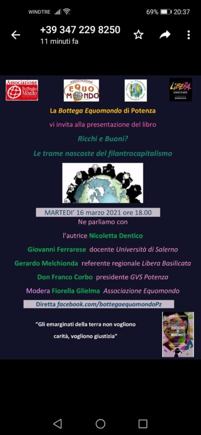 Il 16 marzo 2021, alle ore 18.00, con una diretta facebook, la Bottega Equomondo di Potenza invita alla presentazione del libro “Ricchi o buoni? Le trame nascoste del filantrocapitalismo”.